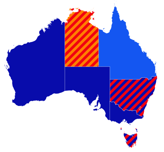 Orange – Country Liberal Party (Opposition) and Pauline Hanson’s One Nation (Crossbench)